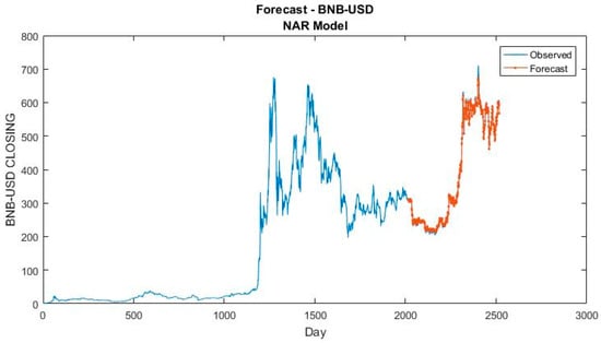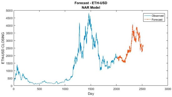 Note that in the cases of less volatile data, the NAR model is sufficiently suitable to accurately forecast future values. The NARX (Non-linear Auto-Regressive with eXogenous inputs) model is defined in terms of a non-linear function f by: