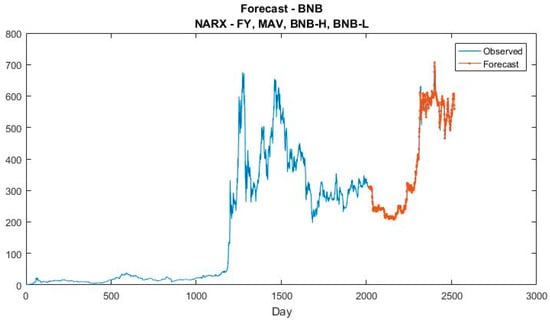 BNB forecast using NARX-FY + MAV, BNB_H, BNB_L model.