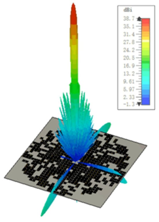 Due to its capability for global seamless coverage, satellite communication has been extensively studied in recent years []. Since 2017, the 3rd Generation Partnership Project (3GPP) has been exploring the integration of satellite communication with ground cellular systems for air–space integration technology, proposing technical standards to support non-terrestrial networks (NTNs) [,]. To achieve optimal spatial coverage, the radiation pattern of the array antenna for satellite communication should meet specific requirements, such as having a high gain, a narrow 3 dB beamwidth, and low sidelobe levels [,].