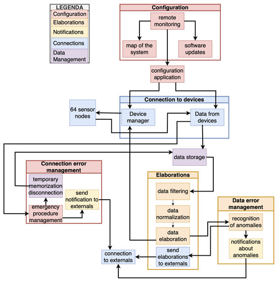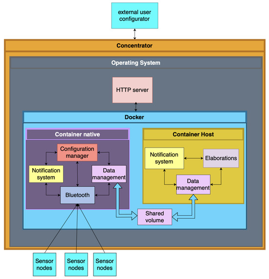 This section will describe the entire system, showing the architecture of the concentrator, as seen in Figure 2, and its functionalities, as seen in Figure 3.