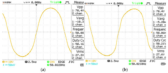 The SATFORMER ability of line and load regulation will be referred to from now on as “regulation action”; in the SATFORMER square loop, magnetic core materials are used [17,19]. When the frequency of the input voltage is 50 Hz (specification), the converter continues to provide a nearly sinusoidal output, even in the case of higher RMS input voltage and/or highly distorted input.