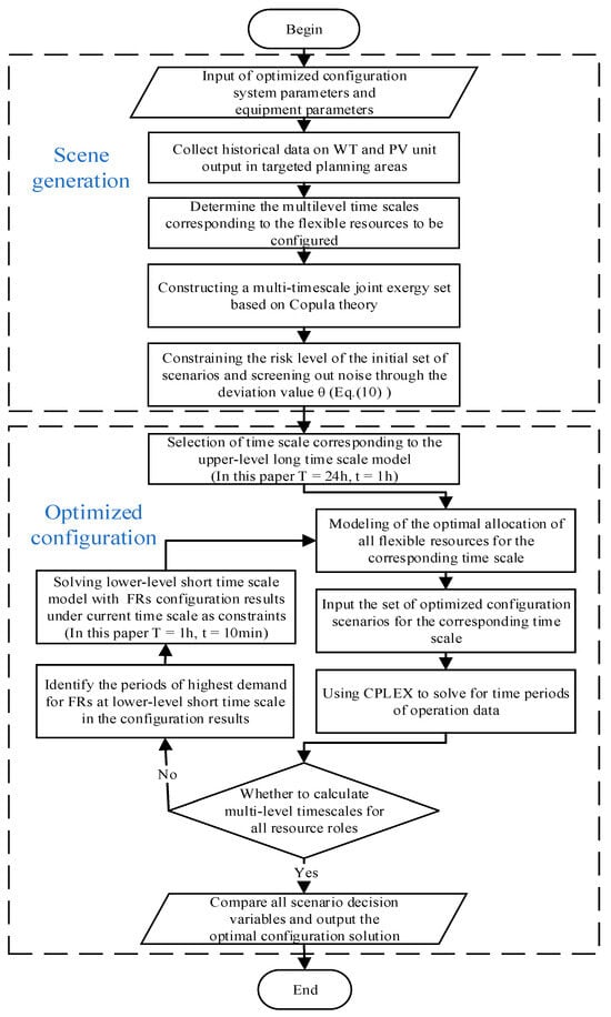 - Based on the scenarios with different time steps generated under the historical data set and selected confidence level, this paper further proposes a multi-timescale multi-FR optimal configuration method considering active and reactive power coordination, which can match the regulation characteristics of active and reactive resources corresponding to the timescales, respectively. The ADNs economy and efficient operation of the renewable unit are integrated as the goal, and the bi-level programming method is adopted for an OCM. While ensuring the balance between the supply and demand of ADNs under long-term fluctuation of renewable energy and the safety of system voltage under short-term fluctuation, the utilization rate of energy assets and FRs is further improved.