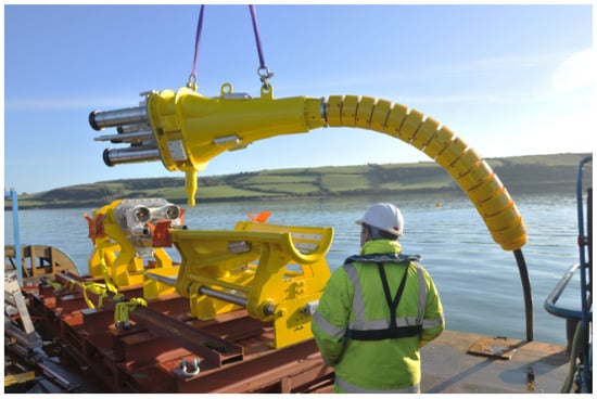 Ocean waters host numerous intercontinental fiber-optic and electrical cable projects driven by international collaborations [64,65]. The subsea industry integrates complex, large-scale subsea equipment and machinery [64]. In addition to simple coaxial and fiber-optic cables, subsea hydraulic control systems utilise massive umbilical cords and extensible pipes that contain both electrical and optical cables [66,67,68]. Subsea cables are complex and can have a diameter of up to 320 millimeters (12.6 inches) [54].