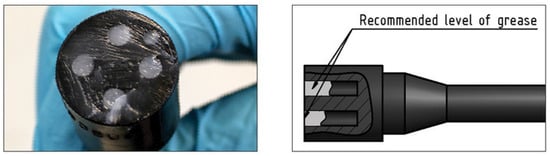There are several variants of wet-mate cables [63]. Rubber-moulded wet-mate connectors utilise a locking sleeve and neoprene or polyurethane over-moulding to create a watertight seal between a female connector end and a glass-reinforced epoxy bulkhead connector [63]. Rigid shell wet-mate connectors, on the other hand, are moulded into a rigid body, providing greater stability, strength, and lockability. The water-locking mechanism involves screwing the two connector halves together and sealing the junction with an O-ring [63]. The water-locking is normally performed underwater, and adequate connector treatment is necessary to ensure proper sealing against water ingress [63]. Connectors must be greased with Molykote 44 Medium before each mating. Adhering to proper procedures using standard greasing products for the application of grease ensures quality mating and secure connectivity, preventing water ingress.