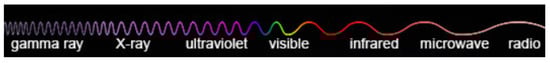 - nasa. Electromagnetic Spectrum—Introduction—imagine.gsfc.nasa.gov. 2013. Available online: https://imagine.gsfc.nasa.gov/science/toolbox/emspectrum1.html (accessed on 14 October 2024).
