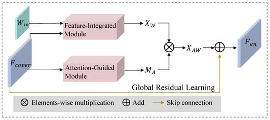 The encoder consists of two key components: the feature-integrated module (FIM) and the attention-guided module (AGM). The FIM addresses the limitation of depending only on surface-level image features, which may not be sufficient for robust watermark embedding. By extracting both shallow and deep features from various convolutional layers, the FIM provides a more complete representation of the image’s structure and texture. This integrated feature set significantly boosts the encoder’s ability to embed the watermark with greater resilience and precision. The feature is derived through the following process: