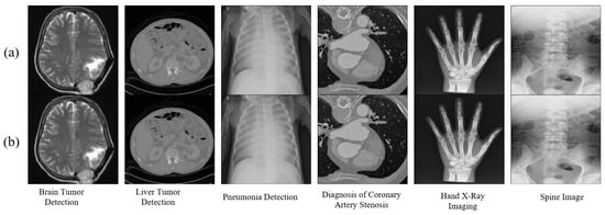 The original data presented in the study are openly available in following datasets: [Brain Tumor Detection datasets] accessed at 27 December 2024 [https://www.kaggle.com/code/pkdarabi/brain-tumor-detection-by-cnn-pytorch/input]; [liver-segmentation datasets] accessed at 27 December 2024 [https://www.kaggle.com/code/tenebris97/liver-segmentation-resnet-50/input]; [Diagnosis Of Pneumonia datasets] accessed at 27 December 2024 [https://www.kaggle.com/code/pkdarabi/diagnosis-of-pneumonia-by-cnn-classifier/input]; [Coronary Artery datasets] accessed at 27 December 2024 [https://www.kaggle.com/code/ahmadpk/heart-disease-classification/input]; [Hand X-ray datasets] accessed at 27 December 2024 [https://www.kaggle.com/datasets/antonbudnychuk/hand-xray]; [Spine Segmentation datasets] accessed at 27 December 2024 [https://www.kaggle.com/datasets/pycadmk/spine-segmentation-from-ct-scans].