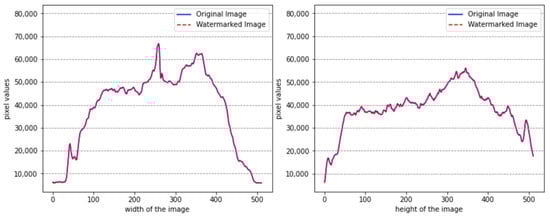 To evaluate the invisibility of the proposed approach regarding distribution of pixel value, Figure 7 provides a comparison of the histograms of the original and watermarked images. By analyzing pixel value distributions in both images, this comparison aims to measure any distortion introduced by the watermarking. The results reveal only minor pixel value deviations, suggesting that the watermarking process maintains high visual quality with minimal distortion.