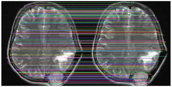 Additionally, the Scale-Invariant Feature Transform (SIFT) method was employed to assess the performance of the watermarking technique by comparing the feature descriptors of the original and watermarked images [,]. This comparison evaluates the structural integrity and perceptual quality of the watermarked images, ensuring that the embedding process does not significantly alter key visual features. The SIFT-based analysis provides a robust framework for assessing resilience against image processing attacks, as it highlights any discrepancies in the local invariant features that could impact the utility of the images in real-world applications. By comparing the SIFT feature descriptors of the original and watermarked images, it is possible to quantify the extent to which the watermark embedding process affects these critical image attributes. A minimal deviation in feature descriptors demonstrates that the watermarking method effectively preserves the image’s essential characteristics, as illustrated in Figure 8.