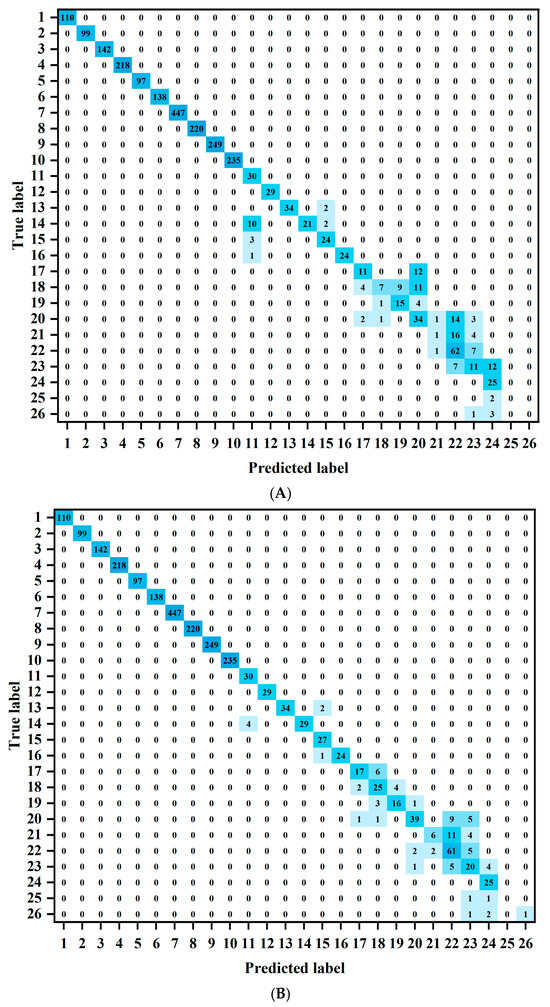 Because the data of common faults dominate the training process, their characteristics have a greater influence on the model parameter updates. The model devotes substantial effort to optimizing the recognition of common faults, neglecting the features of specific faults. Due to the model’s insufficient learning of the essential characteristics of specific faults, it fails to accurately identify data types of specific faults.