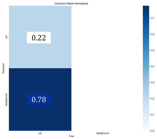 AP (Average Precision) is calculated based on the relationship between Precision and Recall and indicates how accurately the model is detecting objects. It can be calculated by finding the area under the Precision–Recall curve. mAP (mean Average Precision) measures the overall detection performance of the model by averaging the APs of all sample categories. Here, AP and mAP have the same meaning since the only detection class is car. mAP0.5 represents the average accuracy for a detection model IoU set at 0.5, and mAP0.5:0.95 represents the average accuracy for a detection model IoU set at 0.5 intervals from 0.5 to 0.95.