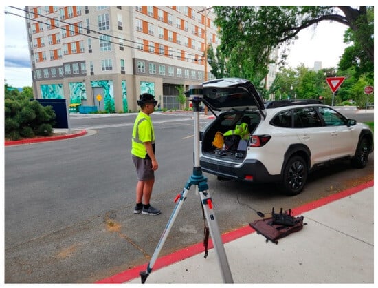 Several transportation studies have been conducted using LiDAR, many of them focusing on analyzing the data provided by LiDAR point cloud readings. For example, a study published in 2019 utilized LiDAR data to detect and track pedestrians and other vehicles within intersections []. Another similar study investigated the use of LiDAR in mapping out intersections for use in vehicle-to-vehicle (V2V) systems []. Some pedestrian-focused studies include one published in 2018, which utilized LiDAR to identify near-crash conflicts between vehicles and pedestrians at intersections []. While their study highlights the advantages of combining data from multiple sources, it relies on sparse LiDAR, which may limit spatial resolution in real-time scenarios. These studies, among others, have leveraged LiDAR’s advanced data collection capabilities in various ways, demonstrating its suitability for our project.
