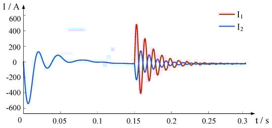 The voltage and current waveforms after the inter-electrode short-circuit fault occurs at both ends of the line are shown in Figure 3 and Figure 4.