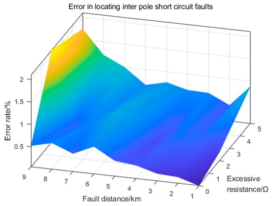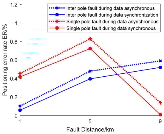As shown in Figure 16, the fault location error rate for the DC transmission line is consistently within 1% when the sampled data are not synchronized. Regardless of the fault location and fault type, it is within the acceptable error range.
