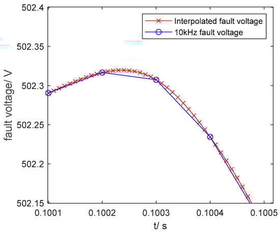 Fault voltage before and after interpolation.