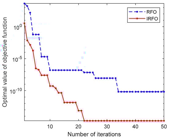 Comparison of convergence between RFO and IRFO algorithms.