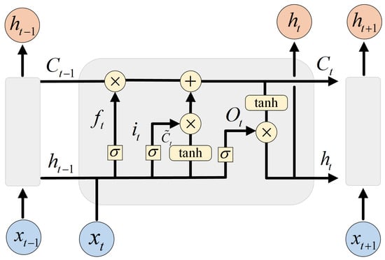 The memory cell allows information to be transmitted across multiple time steps in multiple networks, thus effectively solving the problems of gradient vanishing. At this stage, the update process of memory cells at time steps can be expressed by Equation (8).