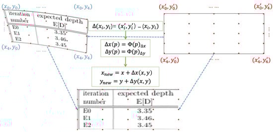 Subsequently, utilizing the aforementioned 25 control points, the displacements can be derived through coordinate transformations, yielding . Following this, it is necessary to establish a thin-plate spline interpolation model. By employing the control points and their corresponding displacements, two distinct thin-plate spline models are constructed: one for the interpolation of the horizontal displacement and the other for the interpolation of the vertical displacement . The specific functional forms are as follows: