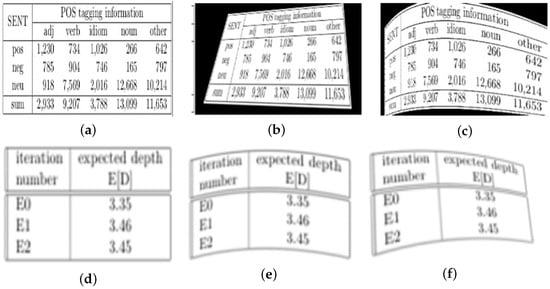 The SCITSR and PubTabNet datasets were chosen as the foundation for the table deformation experiments. Renowned for their high-quality table images, comprehensive annotations, and extensive data volumes, these datasets are widely regarded as benchmarks in table structure recognition. They are frequently utilized to evaluate various table recognition algorithms, ensuring the generality and reliability of experimental results. To generate deformed data, an innovative algorithm combining Bézier curves [] and perspective transformation [] was developed. This approach integrates the nonlinear deformation characteristics of Bézier curves with the geometric deformation properties of perspective transformation, converting normal table data into deformed tables to effectively simulate the complex deformations encountered in real-world scenarios. Compared to methods such as NCGM, which rely on either Bézier curves or perspective transformations alone, the proposed combined approach generates more complex and realistic deformations. This provides more challenging and representative data for evaluating subsequent correction algorithms.