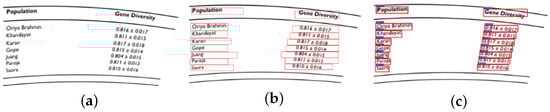 We analyzed the reasons behind the improved recognition performance of the algorithms on the SCITSR dataset after LocRecNet processing. Observations of the images revealed a significant presence of both tables and captions, which introduced noise and complicated the recognition process (Figure 13a). However, after processing with LocRecNet, the images (Figure 13b) contained only the table content. This enhancement increased the model’s accuracy in locating the target, reducing missed detections and enabling it to capture more positive samples.