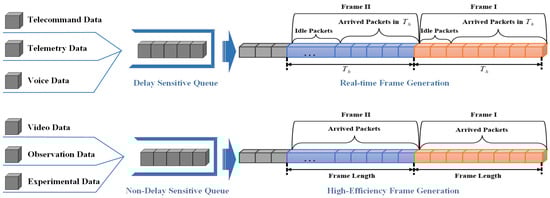 Table 7, the AIFG algorithm continues to demonstrate resilient performance, with stable average delay and throughput across all bandwidth conditions. Although slight improvements in throughput are observed as bandwidth increases, the average delay and efficiency remain within a narrow and acceptable range. The default configuration of 6 Mbps achieved the highest throughput at 575.18 Kbps and the best multiplexing efficiency at 99.52%. Even in constrained link scenarios (e.g., 3 Mbps), the algorithm sustains efficient operation, with a throughput of 566.86 Kbps. These findings confirm the algorithm’s robustness under dynamic bandwidth constraints and validate its practical applicability in real-world spaceborne communication environments.