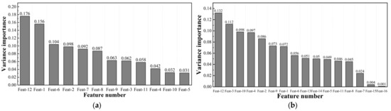 Variance importances of each PD dataset: (a) PD single pulses; and (b) PRPD patterns.
