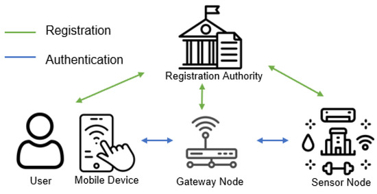 - User: Users can employ their mobile devices to obtain sensor data remotely. To access data, users must first register with the registration authority. After registration, users can use their mobile devices to communicate with sensors through a gateway for successful authentication.