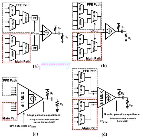 - Gu, Y.; Chen, J.; Li, X.; Chen, Y.; Wu, J. A 32 Gb/s NRZ Wireline Transmitter with CMFB-Based CML Driver in 28 nm CMOS Technology. In Proceedings of the 2021 IEEE International Midwest Symposium on Circuits and Systems (MWSCAS), Lansing, MI, USA, 9–11 August 2021; pp. 14–17. [Google Scholar]