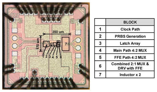 - Park, J.H.; Lee, H.; Cho, H.; Lee, S.; Lee, K.H.; Ko, H.G.; Jeong, D.K. A 32 Gb/s/pin 0.51 pJ/b Single-Ended Resistor-less Impedance-Matched Transmitter with a T-Coil-Based Edge-Boosting Equalizer in 40 nm CMOS. In Proceedings of the 2024 IEEE International Solid-State Circuits Conference (ISSCC), San Francisco, CA, USA, 19–23 February 2023; pp. 410–412. [Google Scholar]