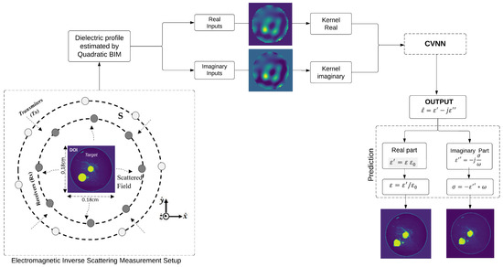 Conversely, this study introduces a comprehensive method that addresses the substantial issues related to ISP in medical imaging, as illustrated in Figure 1. The proposed methodology integrates the Born iterative method (BIM) with quadratic programming for the initial estimation phase. Then, in the subsequent refinement stage, we develop and evaluate three complex-valued neural networks (CVNNs) specifically designed to handle complex value inputs and produce complex value outputs. The main contributions of this study are as follows: (i) we integrate the quadratic Born iterative method (BIM) with complex-valued neural networks (CVNNs) to enhance the reconstruction of dielectric profiles in microwave imaging; (ii) we implement and compare three CVNN architectures demonstrating their respective efficiency in processing complex-valued input data derived from BIM outputs; (iii) we perform a comprehensive quantitative evaluation against real-valued neural networks (RVNNs) across various metrics; and (iv) we examine the computational efficiency and memory utilization of each model to evaluate their practical viability. In general, these contributions aim to illustrate the advantages of employing CVNNs in electromagnetic inverse problems and to provide a solid foundation for future investigations in complex-valued deep learning within biomedical imaging.