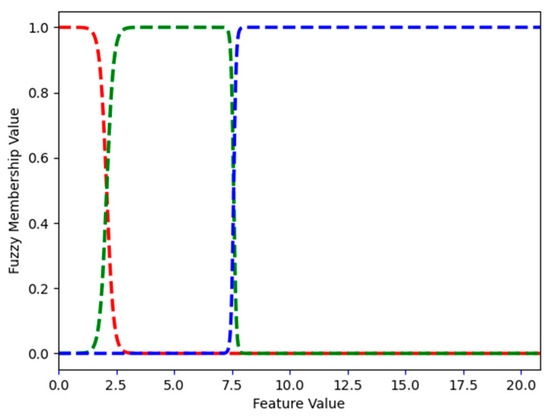 If the user desires three membership functions per feature, K is set to 3, and each mixture model consists of three components, corresponding to three fuzzy classes—e.g., low, medium, and high. These FMFs are then applied to both the training and test datasets to generate fuzzy membership data for 3 × n fuzzy classes (three per feature).