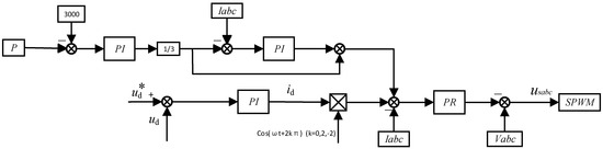 The three-phase voltage reference values ua*, ub* and uc* in the three-phase static coordinate system are added with the per unit value of DC bias voltage Uabc, respectively, to generate the modulated voltage wave signal usabc and input PWM generator to generate the switching signals of six IGBTs driving the converter, so that the six IGBTs can be controlled. The control block diagram is shown in Figure 5.
