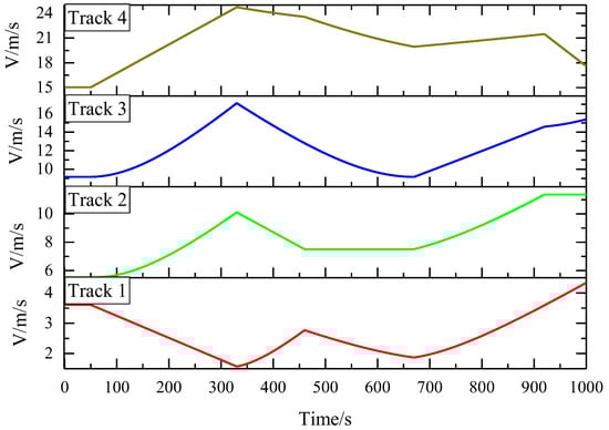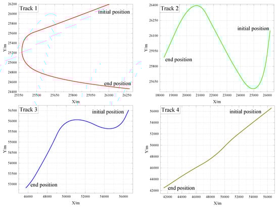 The four surface tracks are designed under different manoeuvring states. The surface tracks are shown in Figure 2, and the speed distribution of each surface track is shown in Figure 3.