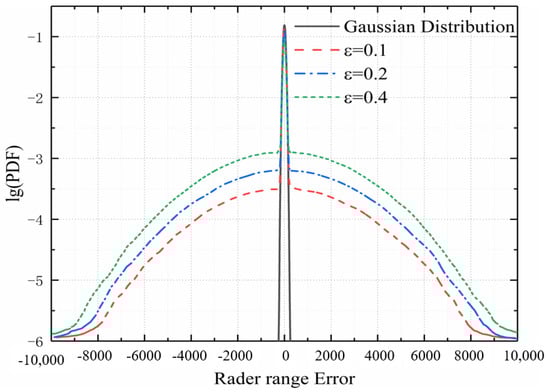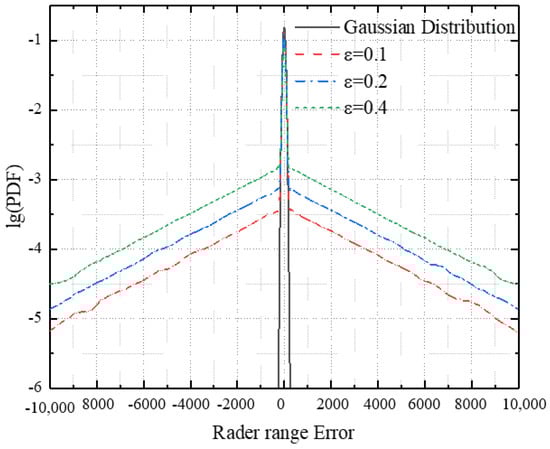 Nevertheless, these filters perform well only under Gaussian noise assumptions. In real radar tracking environments, signal reflections vary significantly due to random fluctuations in radar scattering intensity and phase across different parts of the target. As a result, the measurement noise becomes non-Gaussian, a phenomenon known as glint noise [22]. Glint noise is typically modelled using a mixture of Gaussian distributions as in [23,24,25], or a Gaussian–Laplacian mixture with zero mean as in [26]. Under such conditions, the performance of conventional filters is severely degraded.