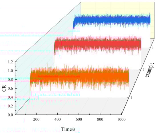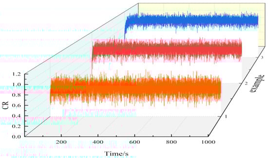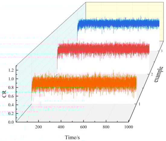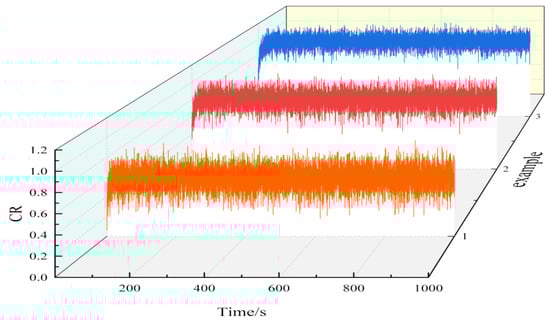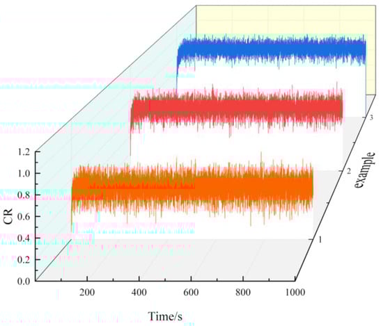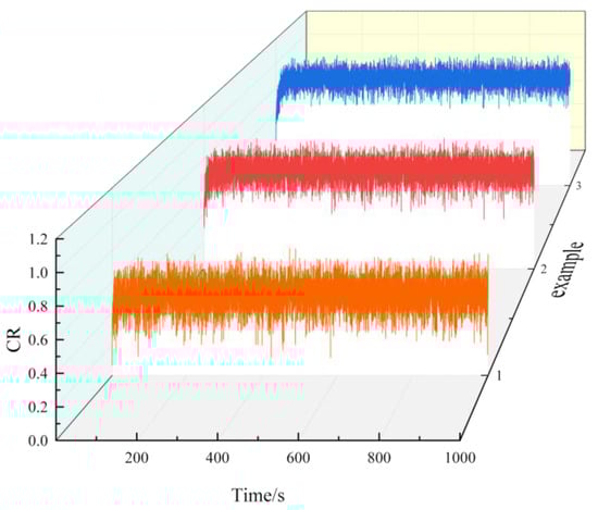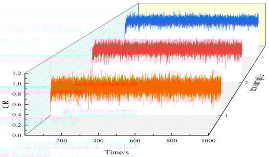 The RCKF_CS is composed of Equations (8)–(18) and Equations (46)–(49). Inspired by the idea of the Huber equivalent weight function, the proposed approach utilises the measurement residual comprehensively, and it uses adaptive factor to change in time. The penalty strategy for adjusting the adaptive factor is constructed by the nondimensional number . If there is a significant outlier in the measurement, is promptly amplified to increase (by Equation (45)) and (by Equation (46)), which will lessen the filtering gain (by Equation (47)). Then, the filtering performance can be improved by reducing the influence of the residual on state updating.
