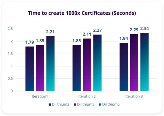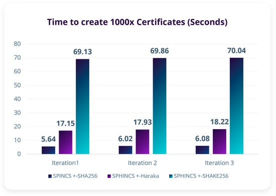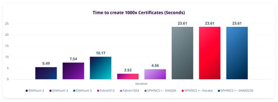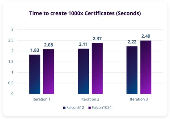 In the current study, 1000 certificates were requested for each variant of the PQC algorithms. This large number of requests allowed for a comprehensive evaluation of the algorithms’ performance and scalability.