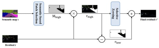 To further compress the residual information, we utilize a residual processing model, which mainly consists of two modules: Semantic-based Patch Selection and Selective Zeroing. This method effectively preserves the residual information of the low-proportion categories, thereby improving the semantic performance of the output image while maintaining an aggressive compression ratio. This process will be explained in detail in Section 4.