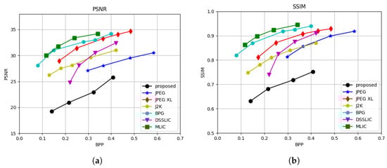 Baselines: We compare the proposed method with standard image compression techniques such as JPEG, J2K, JPEG XL, and BPG, as well as with the deep learning-based image codec DSSLIC [] and MLIC [].