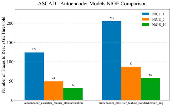 Number of traces required for feature encoding CNN to reach the NtGE threshold on the ASCAD dataset.