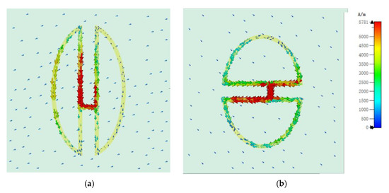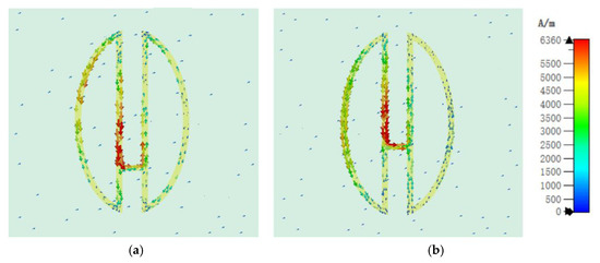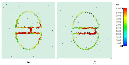 Surface current of Element2: (a) d2 = 20 μm; (b) d2 = 35 μm.