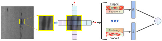 Following each convolution operation, the module applies random feature dropout to mitigate the risk of overfitting. Additionally, BN is employed to balance feature distribution and stabilize the training process. Finally, convolution results from multiple directions are integrated to achieve feature fusion by summarizing key standard features. This multi-directional and multi-morphological convolutional kernel template strategy effectively captures critical characteristics of steel surface defects across different scales and orientations, thereby enhancing overall detection performance.