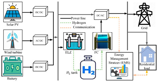- Babatunde, O.M.; Munda, J.L.; Hamam, Y. Hybridized off-grid fuel cell/wind/solar PV/battery for energy generation in a small household: A multi-criteria perspective. Int. J. Hydrogen Energy 2022, 47, 6437–6452. [Google Scholar] [CrossRef]