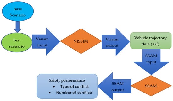 The SSAM conflict analysis tool and VISSIM simulation software workflow are shown in Figure 3.