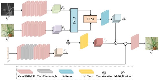 Similar to the processing of RGB features, the depth feature generates the depth weight map Md and finally outputs by interacting with .