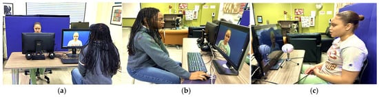 A solid-colored background was placed behind the participant’s chair and adjusted to ensure it was the only visible background in the videos (Figure 1). The participant’s chair was positioned so that only the participant’s head, neck, and upper shoulders were visible in the recording on the computer. Priority was given to the visibility of the participant’s face; therefore, participants were asked to remove hats, jewelry, glasses, bulky clothing, or any other items that could interfere with facial visibility. The distance between the chair and the background was adjusted to accommodate variations in participant height. The recording desktop screen was controlled by the desktop computer manned by the researcher. To minimize background noise, additional movements in the lab were restricted during the recording sessions. The desktop’s camera and microphone and an additional microphone (for improving the sound quality of the participants’ voice) were used to record each participant while vocalizing phonemes (vowels, phonemes, and diphthongs). The recorded video format is MP4, with a bit depth of 8, frame rate of 29.8 frames per second, and resolution of 1920 × 1080. The audio format is MP3 with 2 channels, 1024 samples/frame, and a sampling rate of 44,100 Hz.