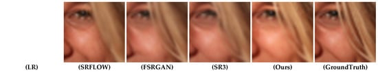 38. Lugmayr, A.; Danelljan, M.; Van Gool, L.; Timofte, R. SRFlow: Learning the Super-Resolution Space with Normalizing Flow. In Proceedings of the Computing Research Repository (CoRR), Glasgow, UK, 23–28 August 2020; pp. 715–732. [Google Scholar]