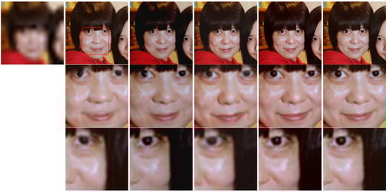 - Ma, C.; Jiang, Z.; Rao, Y. Deep face super-resolution with iterative collaboration between attentive recovery and landmark estimation. In Proceedings of the IEEE/CVF Conference on Computer Vision and Pattern Recognition, Seattle, WA, USA, 13–19 June 2020; pp. 5568–5577. [Google Scholar]