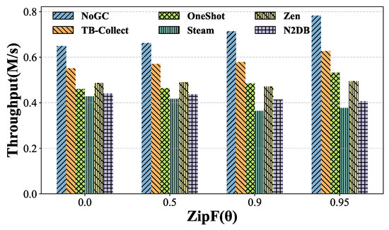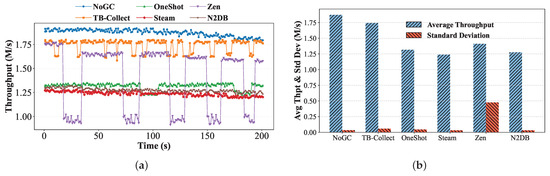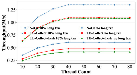 - We implement TB-Collect on DBx1000 [26] and MySQL [27,28], including the GC algorithm and NVM storage, and we evaluate the performance in a real NVM hardware environment and five simulated NVM configurations. Experimental results show that TB-Collect improves transactional throughput by up to 1.58× compared to the existing methods.