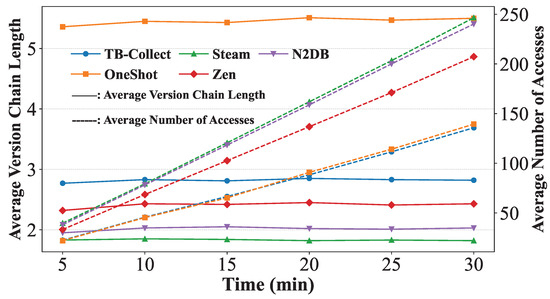 TB-Collect demonstrates efficient garbage collection capabilities. Compared with GC approaches like Steam and N2DB, TB-Collect adopts a block-based version reclamation strategy that avoids frequent traversal of version chains, thereby exerting less impact on system performance. Furthermore, compared to OneShotGC, TB-Collect continuously maintains shorter version chains and avoids building additional hash index structures for old versions. This further reduces write amplification and extra overhead during reclamation, ensuring stable system read/write performance.
