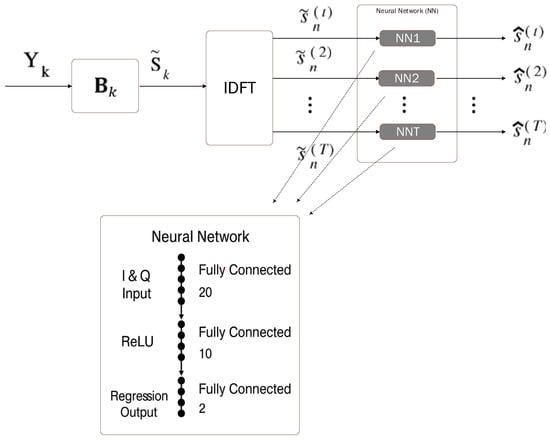 The aim of the neural network relies on removing interference (see Figure 2). To ensure robust learning, the dataset is structured such that each transmit antenna has a dedicated neural network trained independently. Note that the aim is to estimate the signals transmitted by each one of the transmit antennas. This design choice was motivated by the observation that training a single network for all antennas introduced inconsistencies due to the varying channel conditions across antennas. The choice to train independent networks for each antenna was based on the variability of channel conditions across antennas. This ensures that the network can adapt more accurately to the specific conditions of each antenna, resulting in more efficient signal reconstruction.